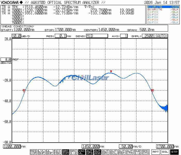 Note: The burr in the spectrum at 1350~1400nm wavelength is the air OH-absorption peak.