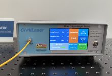 This is 450nm 3000mW blue high power laser, the output power can be adjusted from 0 to 3000mW. Its stability is 0.028%. We coupled a 200μm core diameter SMA095 interface optic fiber. From the video we see that the TEM00 mode laser spot and the laser beam is bright.