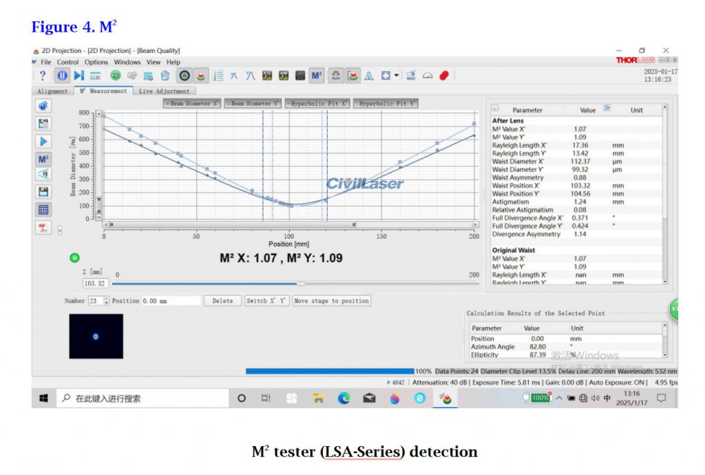 The test report of this 532nm 10W high-power DPSS laser system.