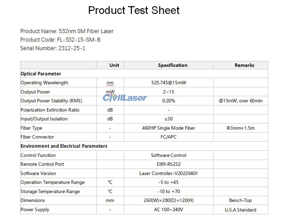 The test data of this 532nm laser.