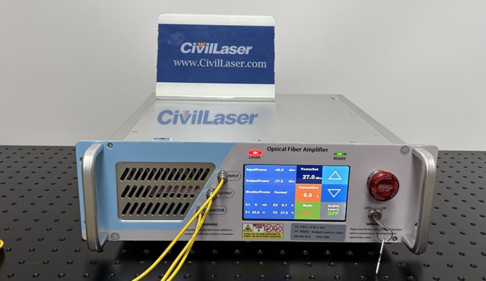 Here is a desktop type, customizable module fiber amplifier. The output can be adjusted on the screen. Use the up and down arrow buttons on the screen to adjust the power directly. You can also click ‘PowerSet’ or ‘CurrenSet’ and enter your desired power value. The amplifier can also be controlled by software.