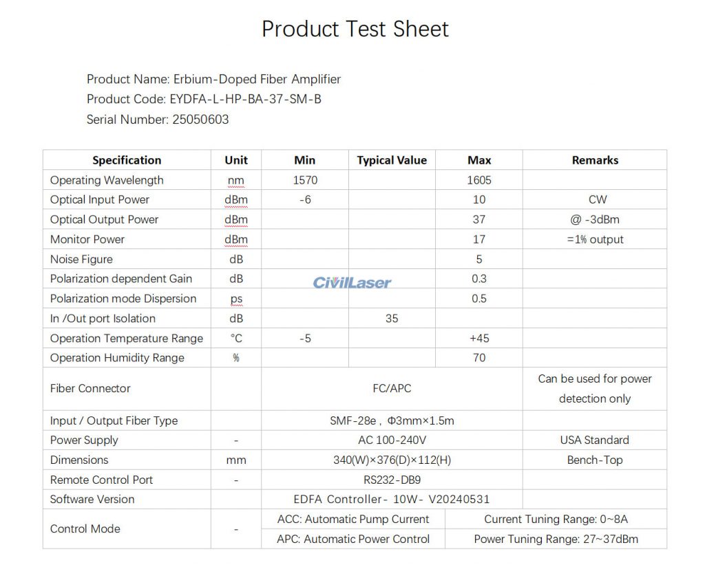 This is a L Band 37dBm erbium-doped fiber amplifier. High power EDFA has built-in cooling fan.
